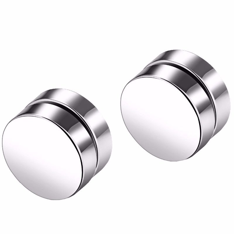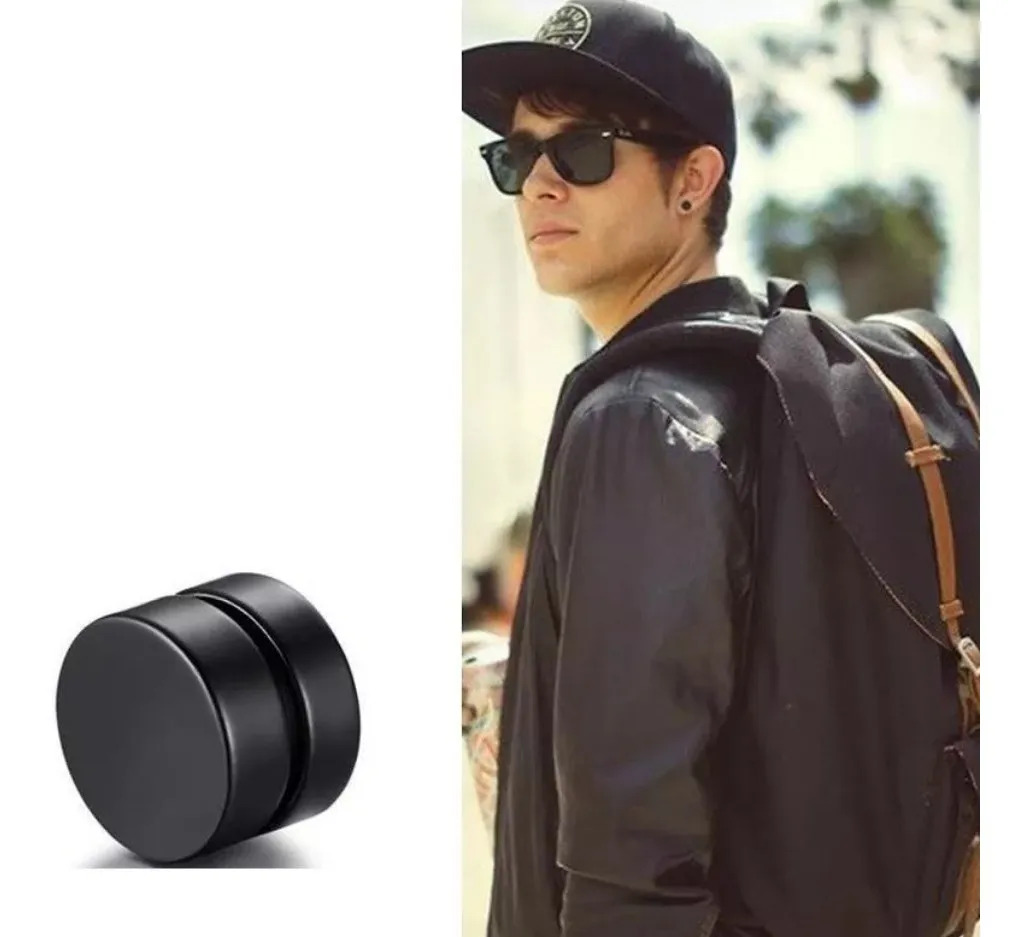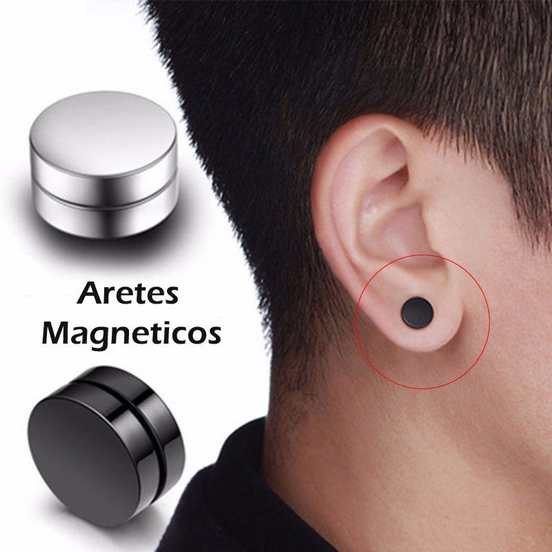 Aretes magnéticos que vienen en tres tamaños diferentes: 6mm, 8mm, y 10mm. Están diseñados para ser unisex, es decir, adecuados tanto para hombres como para mujeres. Los aretes están disponibles en dos colores: negro y plateado, y tienen la apariencia de discos planos que se mantienen en su lugar mediante un imán incorporado, lo que permite que se usen sin necesidad de perforaciones en las orejas.